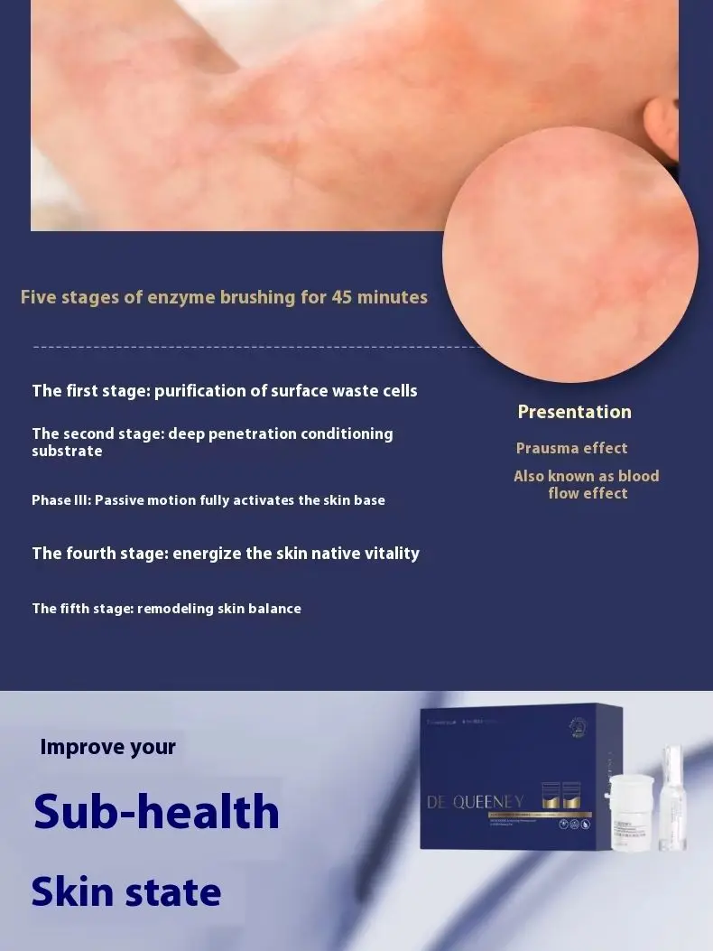 Enzyme therapy can promote blood circulation within the skin, helping to eliminate toxins and waste, making the skin appear brighter and more lustrous.